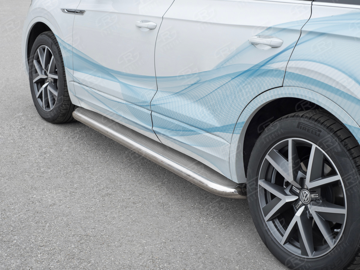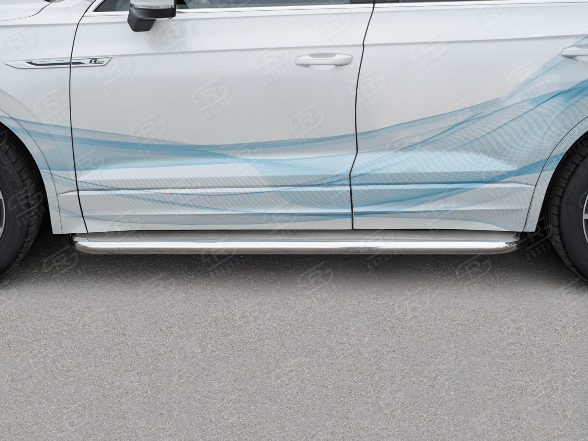 VOLKSWAGEN TOUAREG 2018- Пороги труба d63 с листом (Лист нерж, проф. нерж) (вариант 3) VWTL-0030663 производится из итальянской нержавеющей высококачественной полированной стали марки AISI 304. Идеально подходит по заводским параметрам, и устанавливается без дополнительных изменений в кузове. Вся продукция сертифицирована. Мы производим аксессуары с 2006 года. В распоряжении компании имеются собственные производственные площадки, поэтому вся работа производится без подрядчиков и посредников.