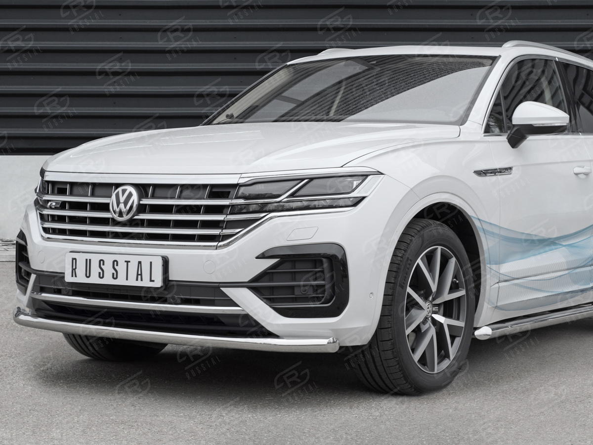 VOLKSWAGEN TOUAREG 2018- Защита переднего бампера d63 секции VWTZ-003060 производится из итальянской нержавеющей высококачественной полированной стали марки AISI 304. Идеально подходит по заводским параметрам, и устанавливается без дополнительных изменений в кузове. Вся продукция сертифицирована. Мы производим аксессуары с 2006 года. В распоряжении компании имеются собственные производственные площадки, поэтому вся работа производится без подрядчиков и посредников.