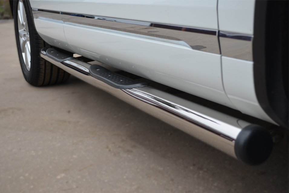 VolksWagen Touareg 2010-2013 пороги труба d76 с накладками (вариант 2) VTT-0007022 производится из итальянской нержавеющей высококачественной полированной стали марки AISI 304. Идеально подходит по заводским параметрам, и устанавливается без дополнительных изменений в кузове. Вся продукция сертифицирована. Мы производим аксессуары с 2006 года. В распоряжении компании имеются собственные производственные площадки, поэтому вся работа производится без подрядчиков и посредников.