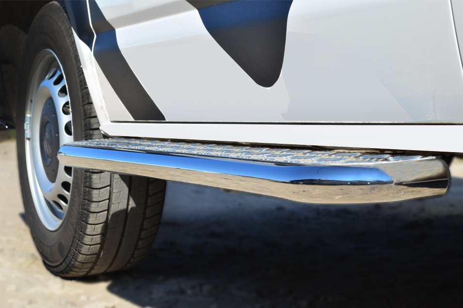 VOLKSWAGEN Multivan/Caravelle 2010-2015 Пороги труба d42 с листом (Лист алюм,проф.нерж)(1) VTKL-001399 производится из итальянской нержавеющей высококачественной полированной стали марки AISI 304. Идеально подходит по заводским параметрам, и устанавливается без дополнительных изменений в кузове. Вся продукция сертифицирована. Мы производим аксессуары с 2006 года. В распоряжении компании имеются собственные производственные площадки, поэтому вся работа производится без подрядчиков и посредников.