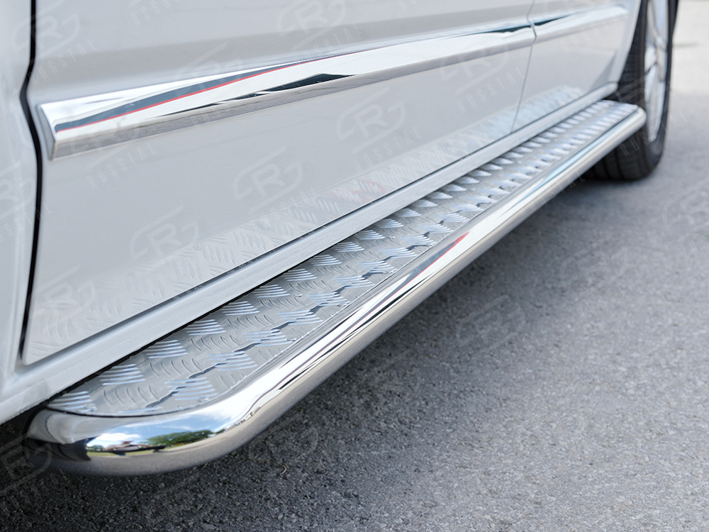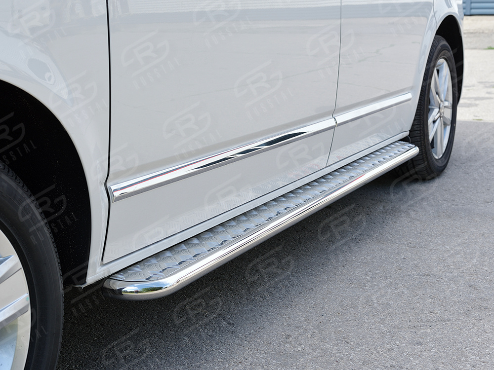 VOLKSWAGEN Multivan Caravella Transporter Т6 2016 (короткая база) Пороги труба d42 левый С листом (Лист алюм, проф. нерж)(Вариант1) VCTL-0023121 производится из итальянской нержавеющей высококачественной полированной стали марки AISI 304. Идеально подходит по заводским параметрам, и устанавливается без дополнительных изменений в кузове. Вся продукция сертифицирована. Мы производим аксессуары с 2006 года. В распоряжении компании имеются собственные производственные площадки, поэтому вся работа производится без подрядчиков и посредников.