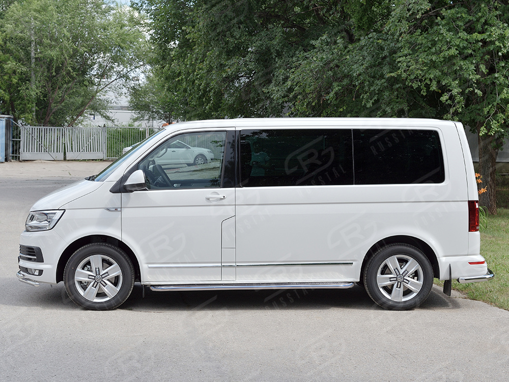 VOLKSWAGEN Multivan Caravella Transporter Т6 2016 (короткая база) Пороги труба d42 правый С листом (Лист нерж, проф. нерж)(Вариант3) VCTL-0023153 производится из итальянской нержавеющей высококачественной полированной стали марки AISI 304. Идеально подходит по заводским параметрам, и устанавливается без дополнительных изменений в кузове. Вся продукция сертифицирована. Мы производим аксессуары с 2006 года. В распоряжении компании имеются собственные производственные площадки, поэтому вся работа производится без подрядчиков и посредников.