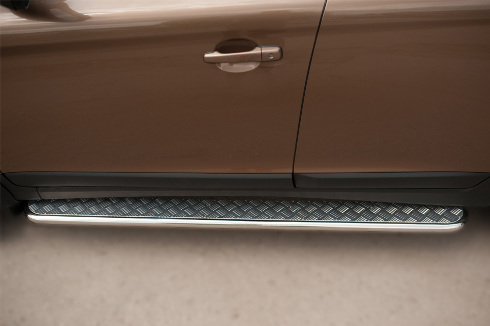Volvo XC 60 2008-2013 Пороги труба d42 с листом (Лист алюм,проф.нерж)(Вариант1) VXCL-002077 производится из итальянской нержавеющей высококачественной полированной стали марки AISI 304. Идеально подходит по заводским параметрам, и устанавливается без дополнительных изменений в кузове. Вся продукция сертифицирована. Мы производим аксессуары с 2006 года. В распоряжении компании имеются собственные производственные площадки, поэтому вся работа производится без подрядчиков и посредников.
