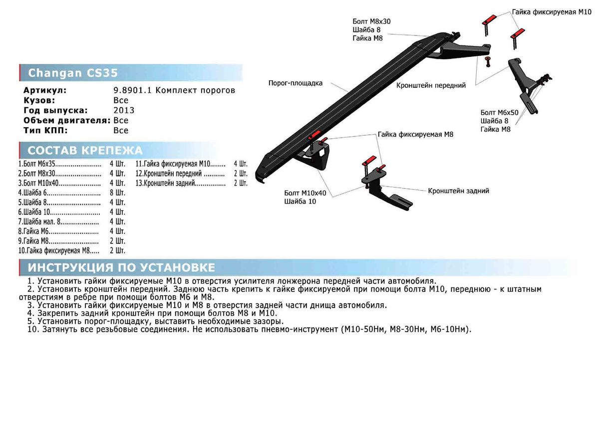 - Установка в штатные места крепления не требует сверления и дополнительной доработки автомобиля.