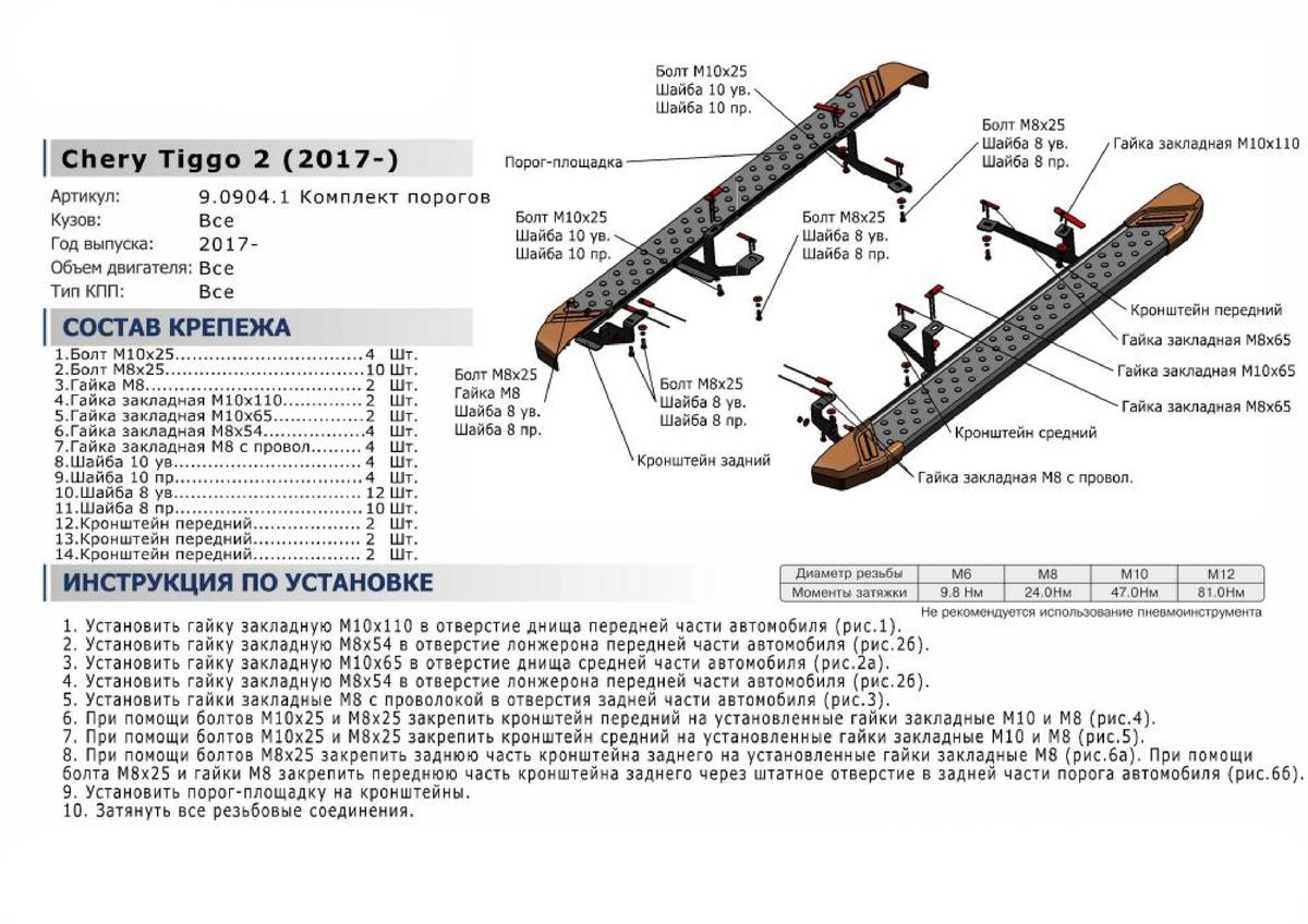 —Пороги алюминиевые Rival "Premium" для Chery Tiggo 2 2017-