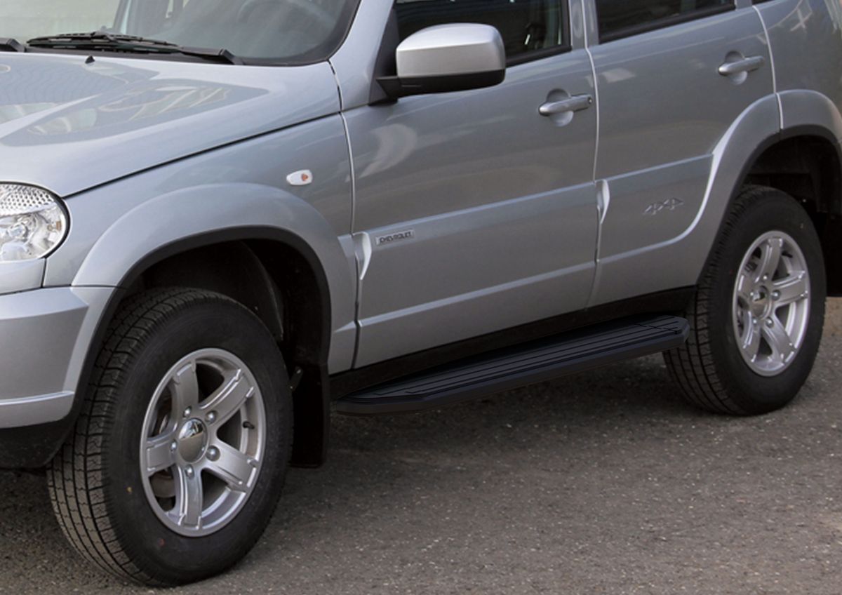 Фото Пороги алюминиевые Rival "Premium-Black" для Chevrolet Niva 2002-2009-