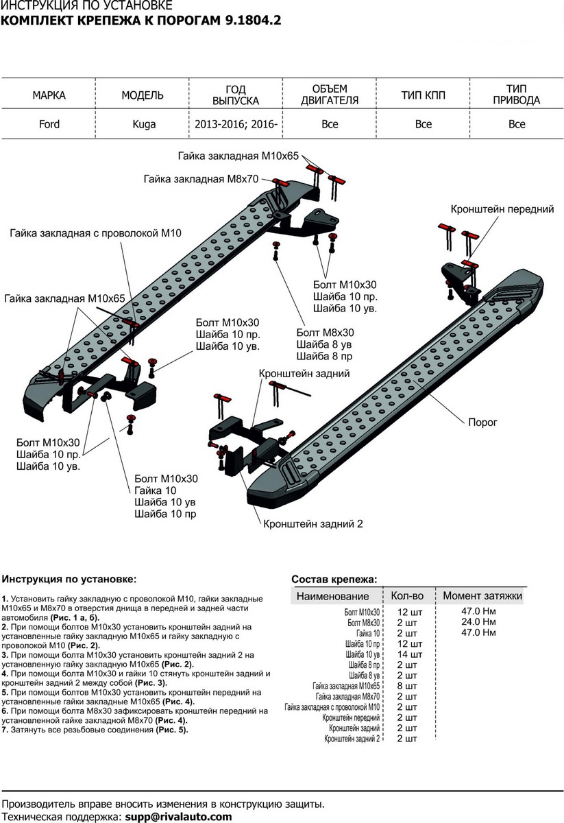 Надежные пороги Rival обеспечивают удобство посадки в автомобиль водителю и пассажирам(в особенности детям), дополняют экстерьер автомобиля, придавая ему стильность и индивидуальность. Основное преимущество порогов Rival - наличие силовых кронштейнов, которые позволяют порогу выдерживать динамическую нагрузку до 150 кг, без повреждений конструкции.