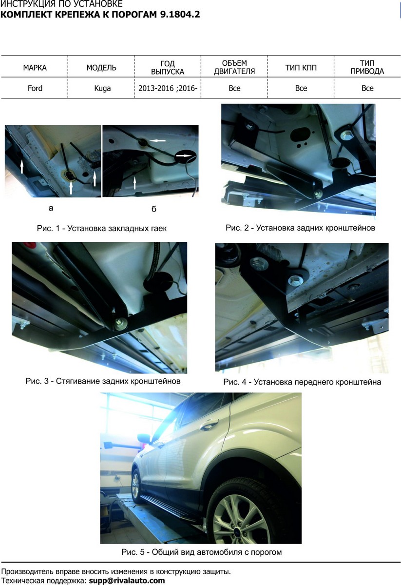 Фото Пороги алюминиевые Rival "Premium" для Ford Kuga 2013-2016-