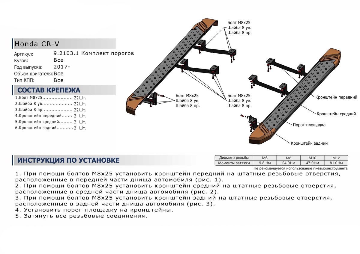 —Пороги алюминиевые Rival "Bmw-Style" для Honda CR-V 2017-