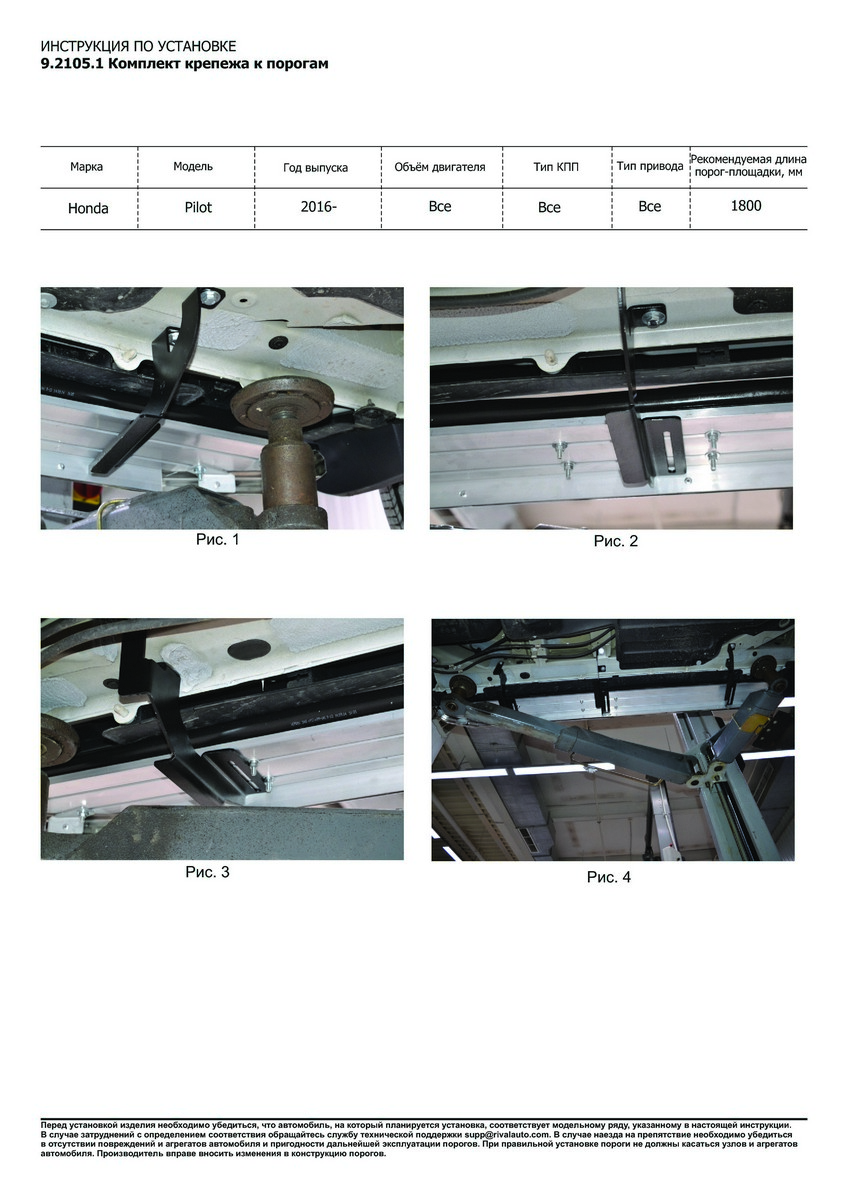 Фото Пороги алюминиевые Rival "Bmw-Style" для Honda Pilot 2016-