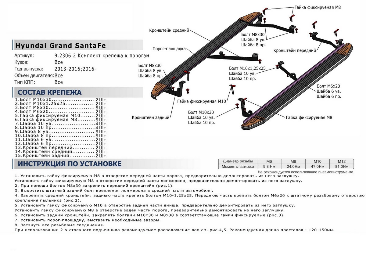 - Установка в штатные места крепления не требует сверления и дополнительной доработки автомобиля.