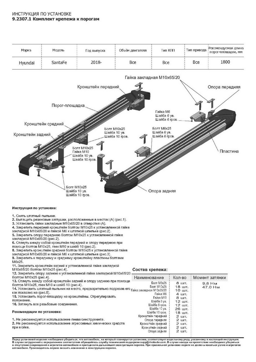 Надежные пороги Rival обеспечивают удобство посадки в автомобиль водителю и пассажирам(в особенности детям), дополняют экстерьер автомобиля, придавая ему стильность и индивидуальность. Основное преимущество порогов Rival - наличие силовых кронштейнов, которые позволяют порогу выдерживать динамическую нагрузку до 150 кг, без повреждений конструкции.