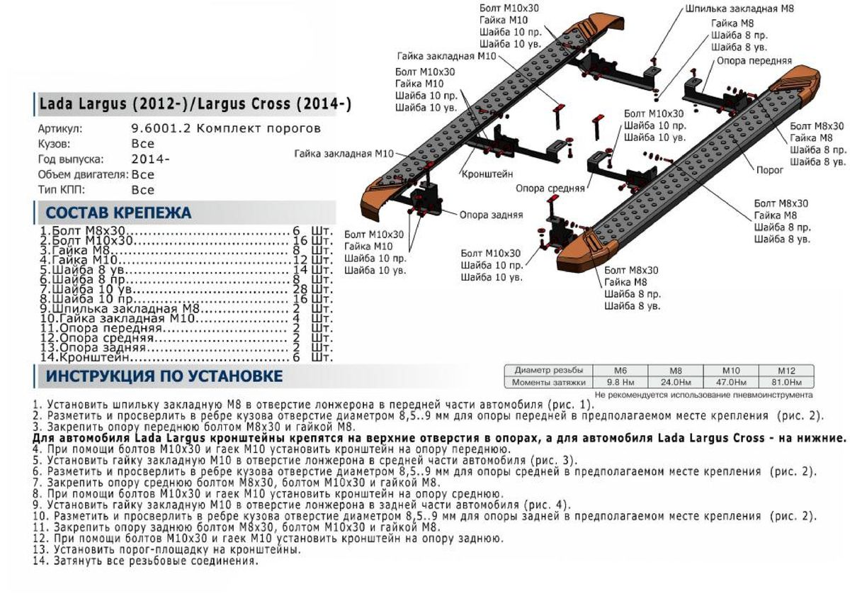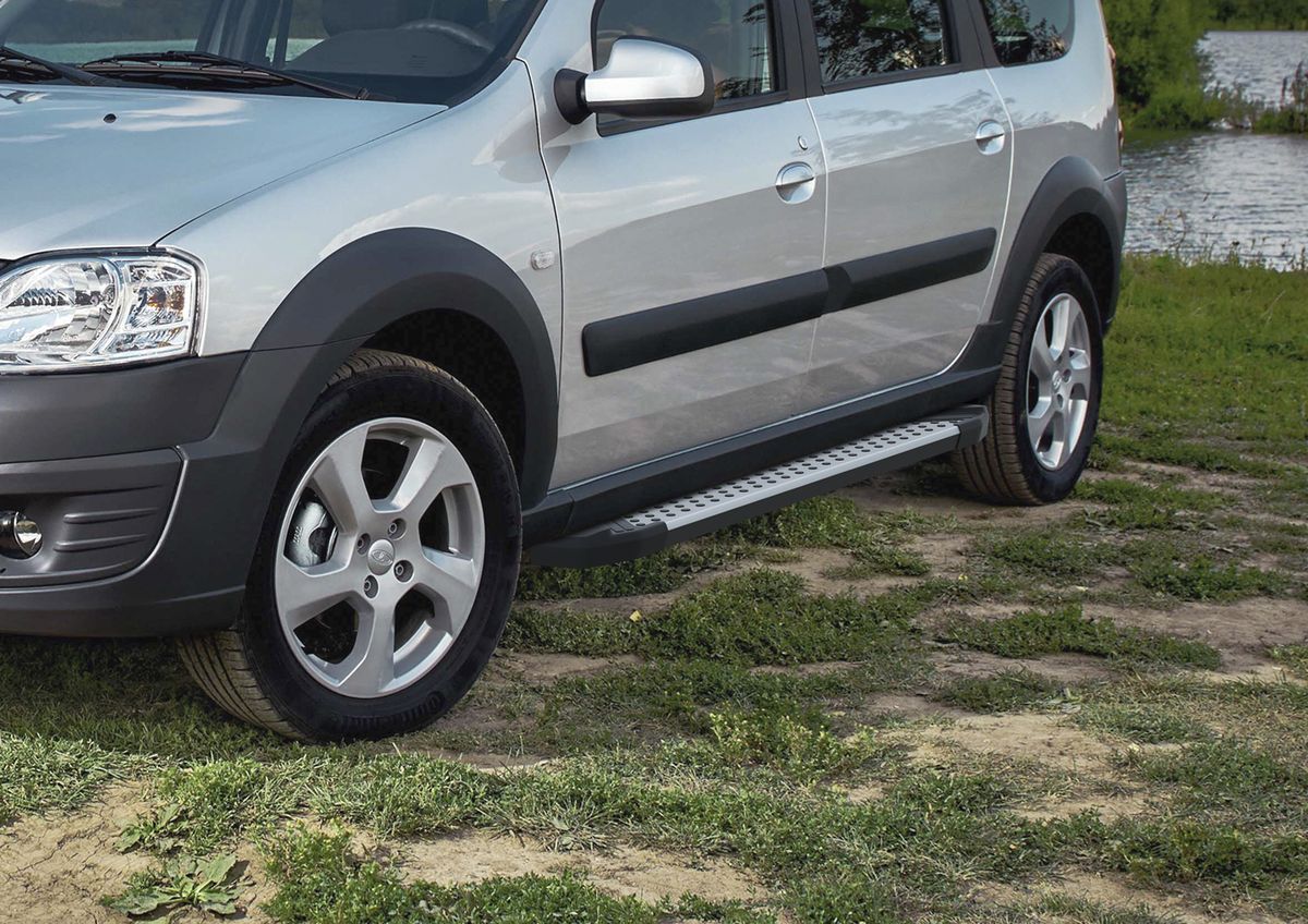 Фото Пороги алюминиевые Rival "Bmw-Style" для Lada Largus 2012- / Largus Cross 2014-