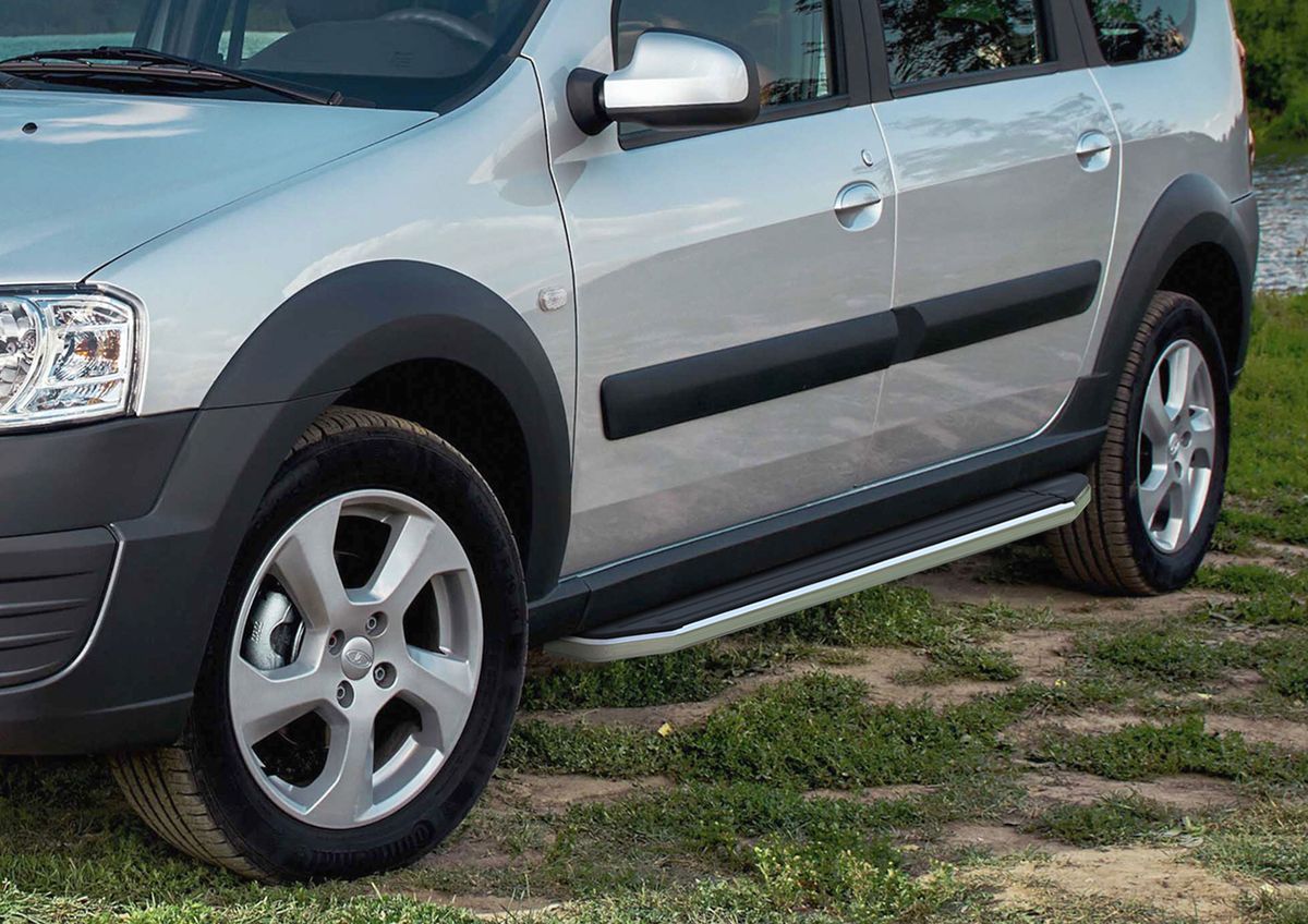 Фото Пороги алюминиевые Rival "Premium" для Lada Largus 2012- / Largus Cross 2014-