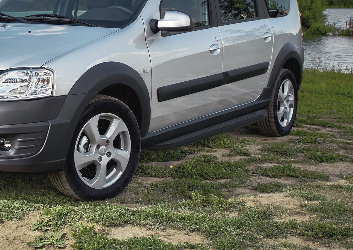 Фото Пороги алюминиевые Rival "Premium-Black" для Lada Largus 2012- / Largus Cross 2014-