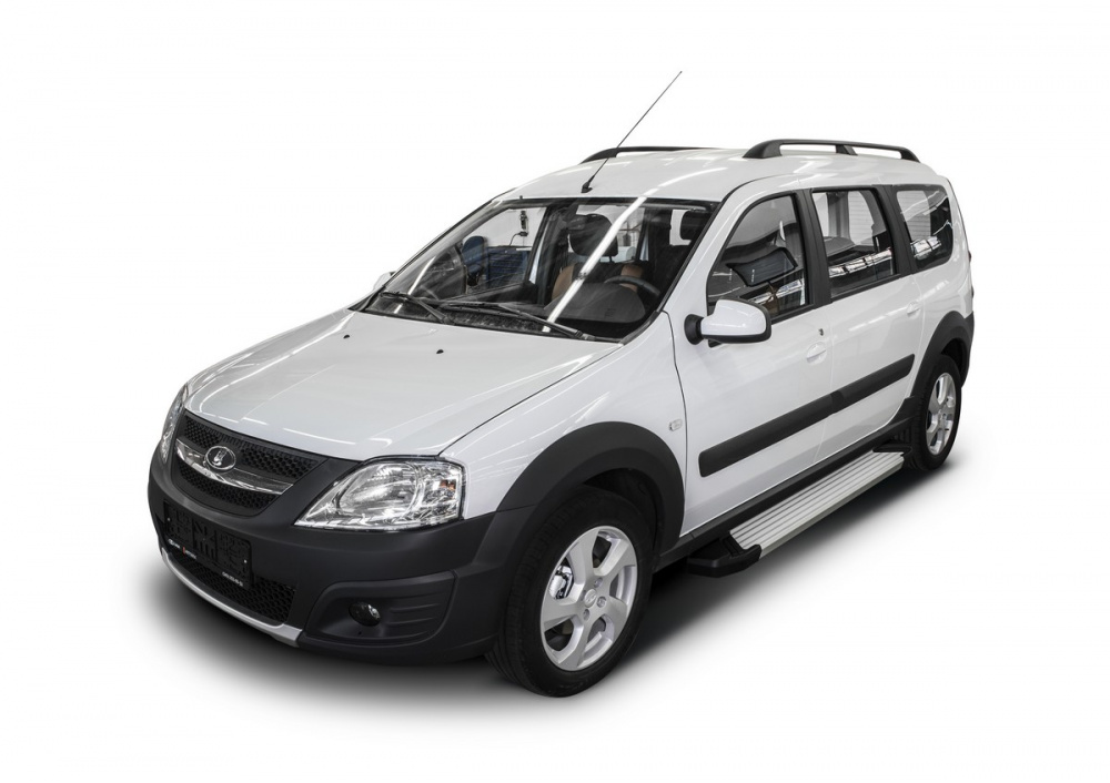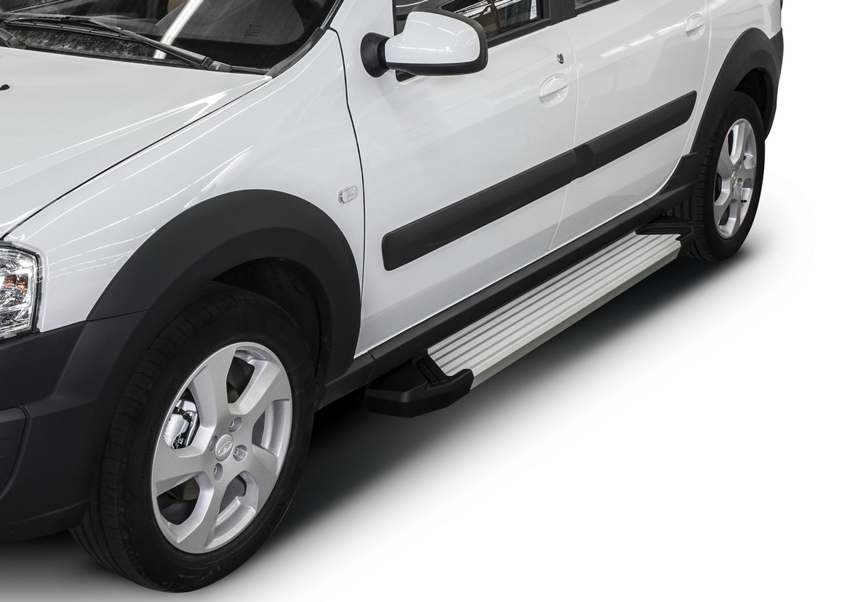 Пороги алюминиевые Rival "Silver" для Lada Largus 2012- / Largus Cross 2014-