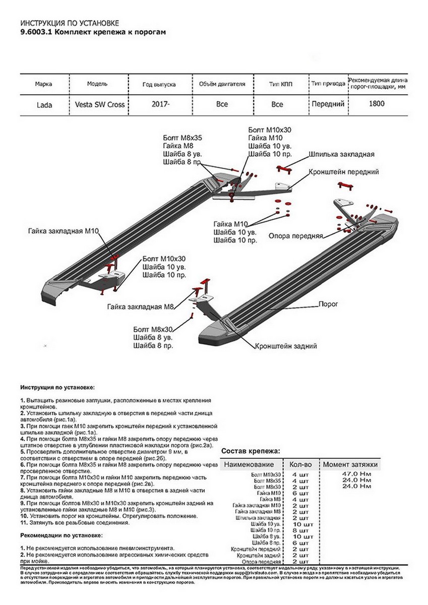 Надежные пороги Rival обеспечивают удобство посадки в автомобиль водителю и пассажирам(в особенности детям), дополняют экстерьер автомобиля, придавая ему стильность и индивидуальность. Основное преимущество порогов Rival - наличие силовых кронштейнов, которые позволяют порогу выдерживать динамическую нагрузку до 150 кг, без повреждений конструкции.