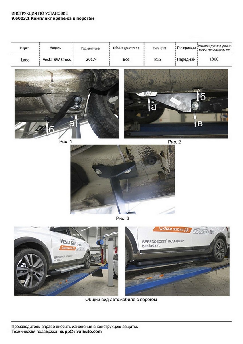 Фото Пороги алюминиевые Rival "Premium-Black" для Lada Vesta SW Cross 2017-