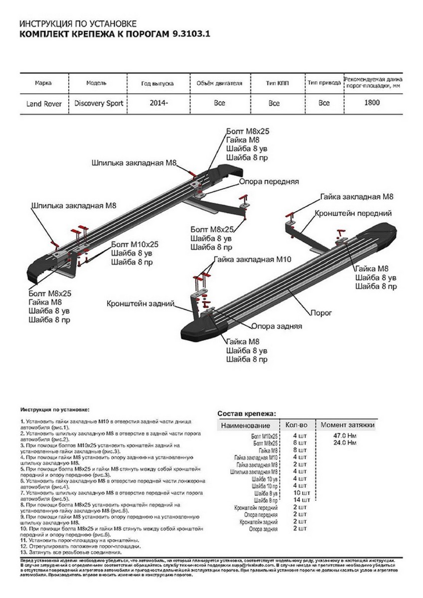 —Пороги алюминиевые Rival "Bmw-Style" для Land Rover Discovery Sport 2014-