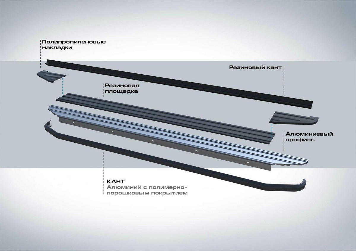Надежные пороги Rival обеспечивают удобство посадки в автомобиль водителю и пассажирам(в особенности детям), дополняют экстерьер автомобиля, придавая ему стильность и индивидуальность. Основное преимущество порогов Rival - наличие силовых кронштейнов, которые позволяют порогу выдерживать динамическую нагрузку до 150 кг, без повреждений конструкции.