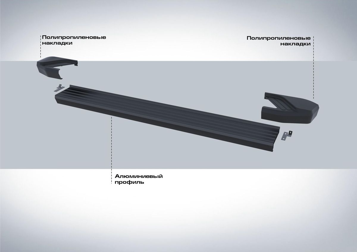 Надежные пороги Rival обеспечивают удобство посадки в автомобиль водителю и пассажирам(в особенности детям), дополняют экстерьер автомобиля, придавая ему стильность и индивидуальность. Основное преимущество порогов Rival - наличие силовых кронштейнов, которые позволяют порогу выдерживать динамическую нагрузку до 150 кг, без повреждений конструкции.