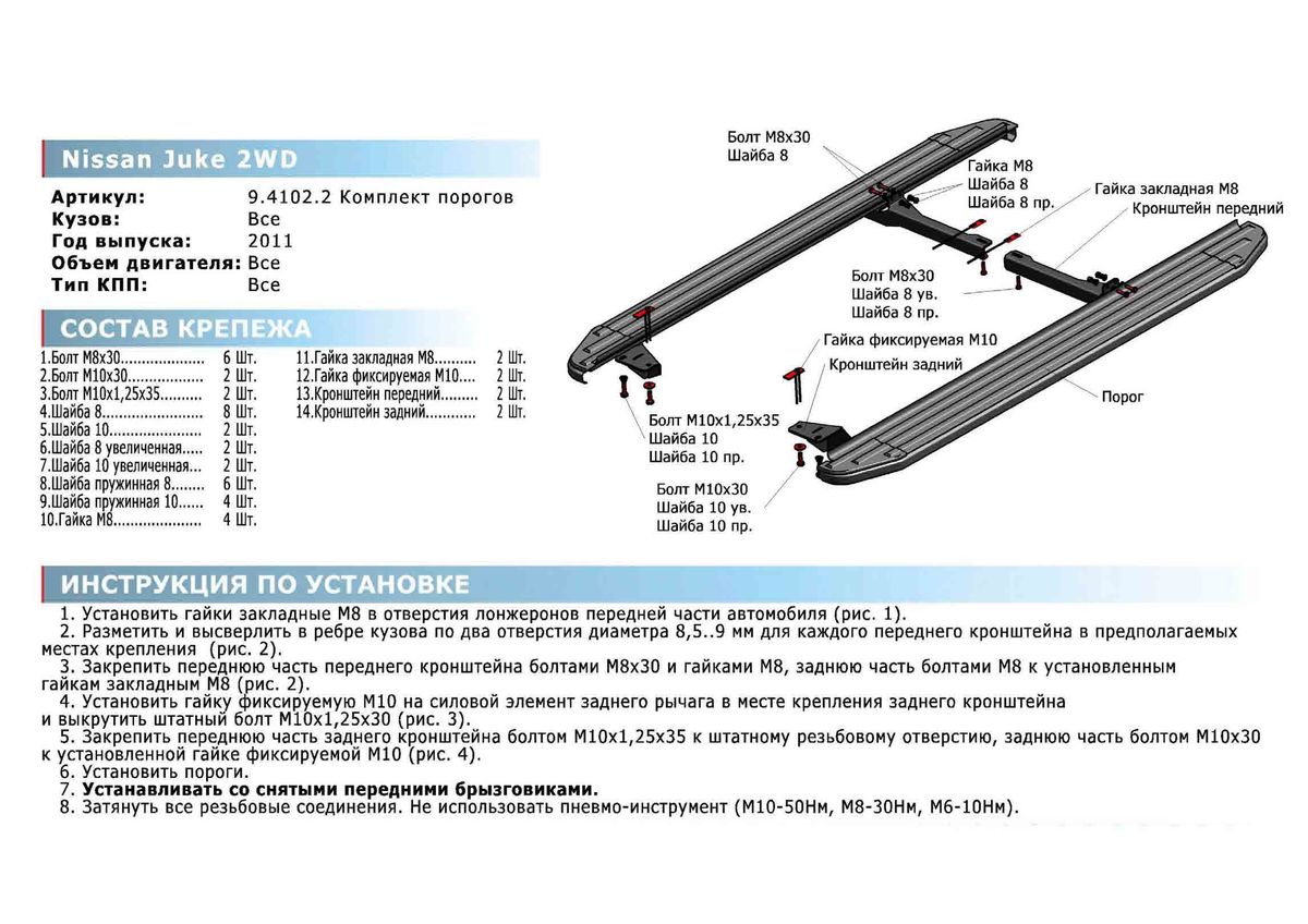 —Пороги алюминиевые Rival "Bmw-Style" для Nissan Juke, FWD 2010-2014-2016