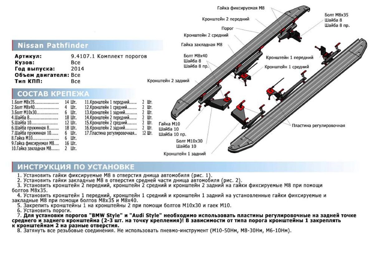 Фото Пороги алюминиевые Rival "Bmw-Style" для Nissan Pathfinder 2014-2017