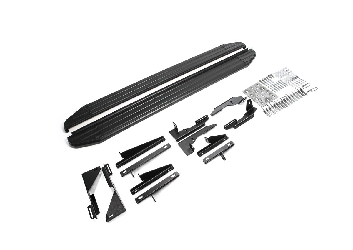 —Пороги алюминиевые Rival "Premium-Black" для Nissan Pathfinder 2014-2017