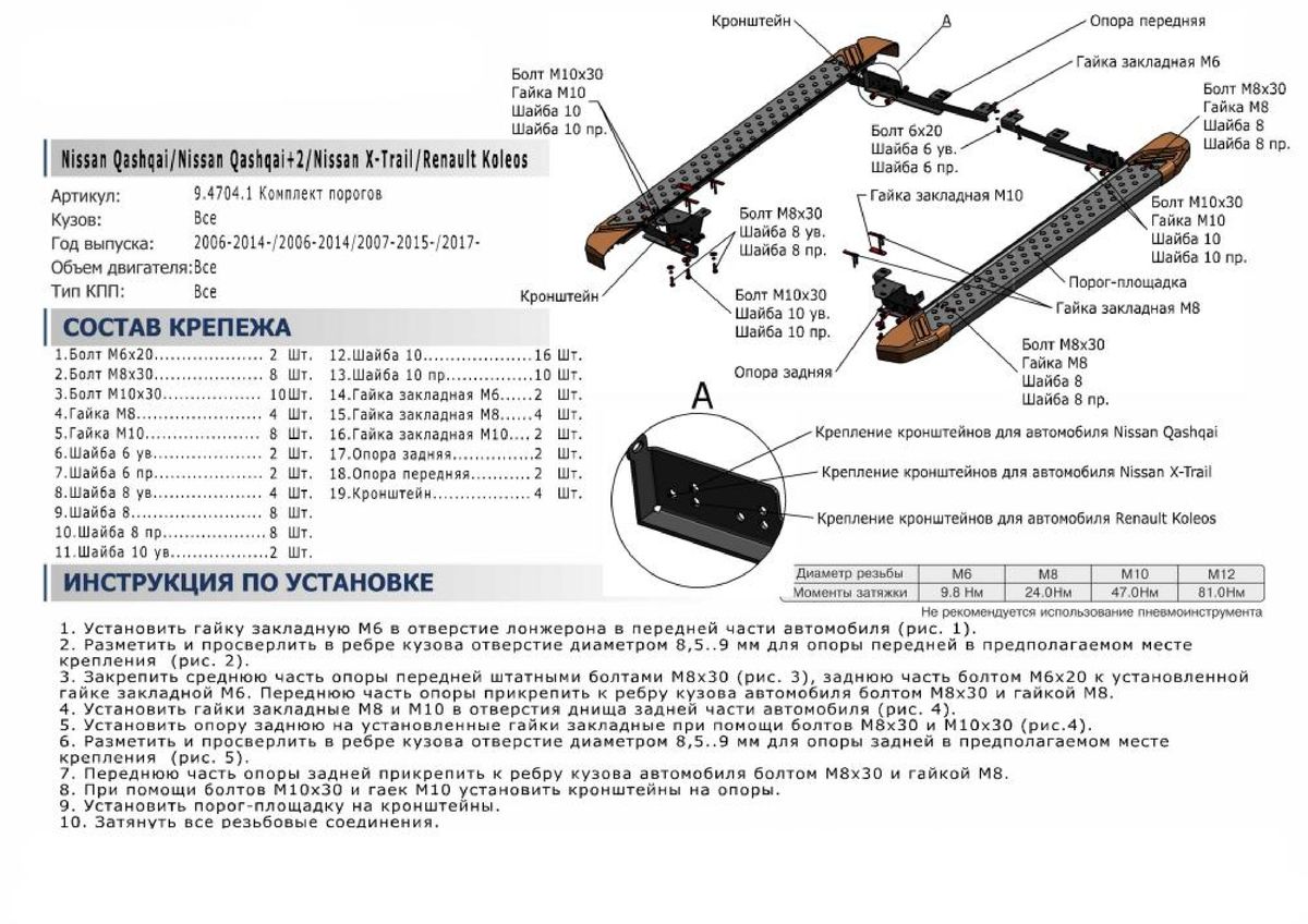 —Пороги алюминиевые Rival "Bmw-Style" для Nissan Qashqai 2013-