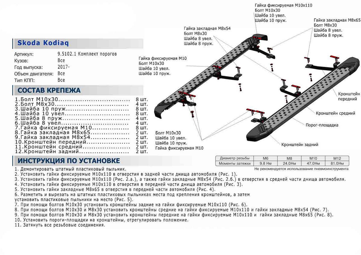 Фото Пороги алюминиевые Rival "Bmw-Style" для Skoda Kodiaq 2017-