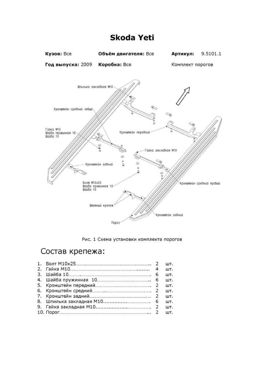 Фото Пороги алюминиевые Rival "Premium" для Skoda Yeti 2009-2014-