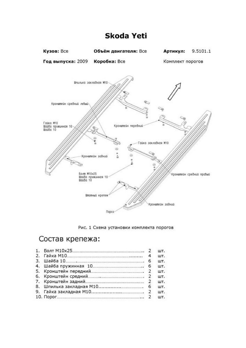 —Пороги алюминиевые Rival "Bmw-Style" для Skoda Yeti 2009-2014-