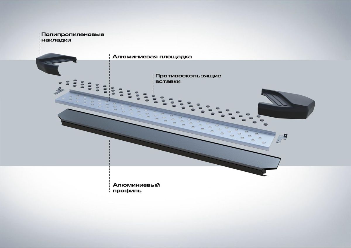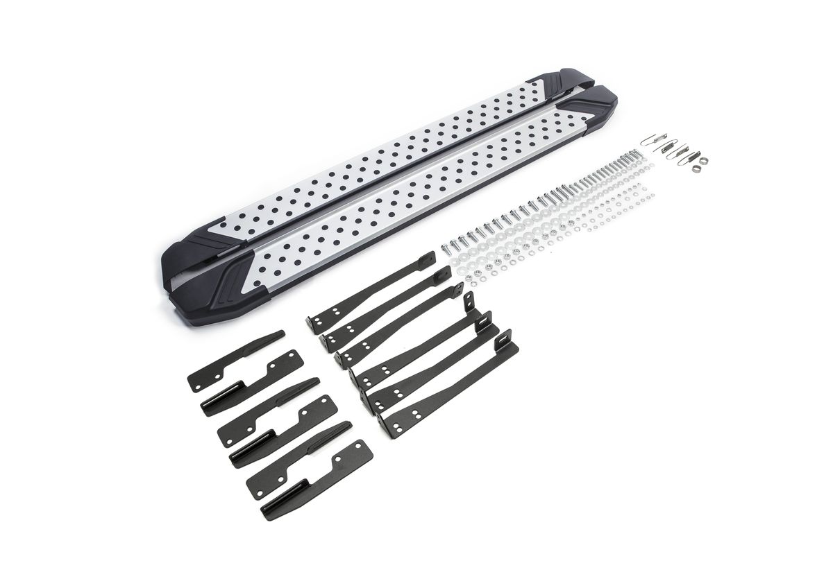 Надежные пороги Rival обеспечивают удобство посадки в автомобиль водителю и пассажирам(в особенности детям), дополняют экстерьер автомобиля, придавая ему стильность и индивидуальность. Основное преимущество порогов Rival - наличие силовых кронштейнов, которые позволяют порогу выдерживать динамическую нагрузку до 150 кг, без повреждений конструкции.
