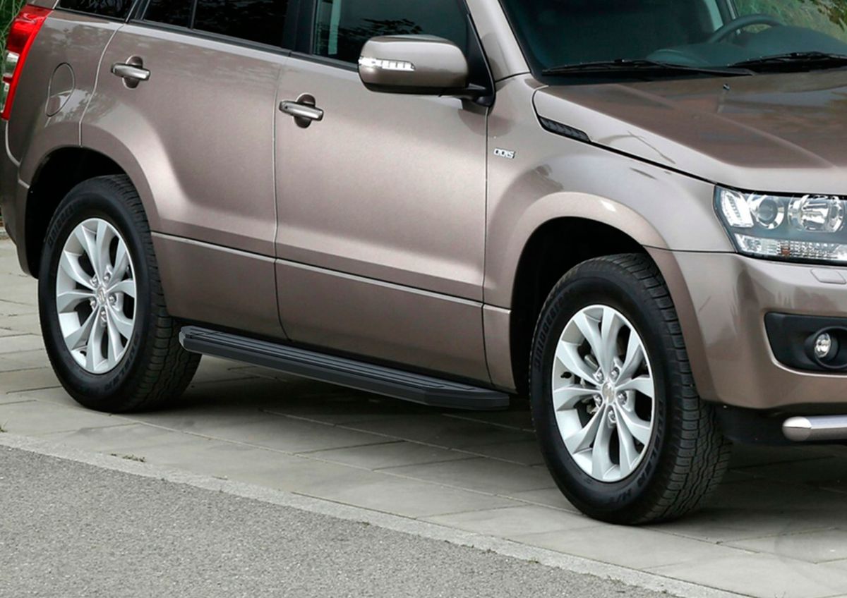 —Пороги алюминиевые Rival "Premium-Black" для Suzuki Grand Vitara, 5D 2005-2008-2012-2016
