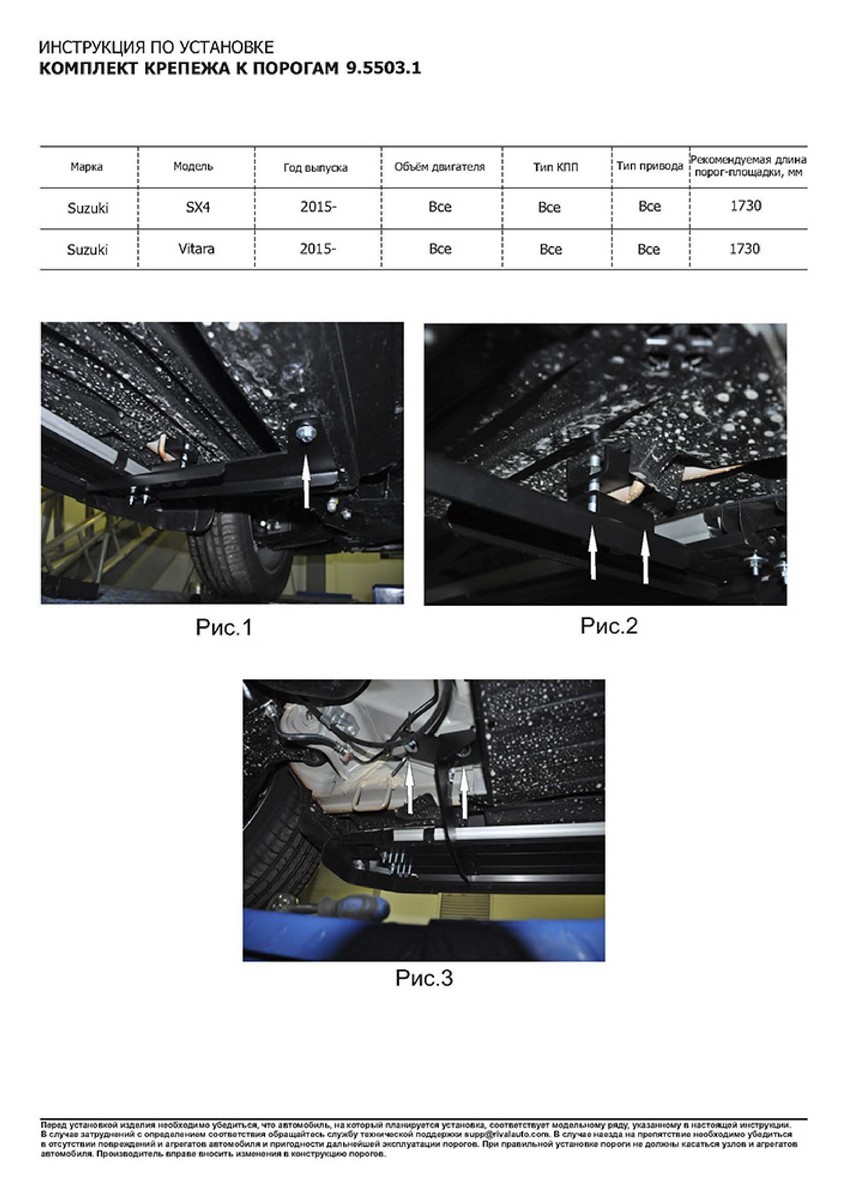 Фото Пороги алюминиевые Rival "Silver" для Suzuki SX4 2015-