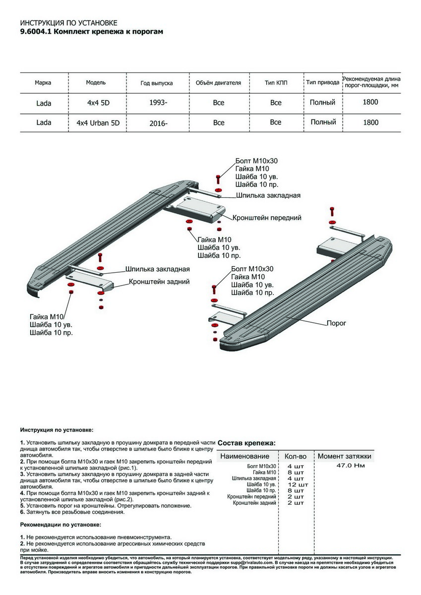 Надежные пороги Rival обеспечивают удобство посадки в автомобиль водителю и пассажирам(в особенности детям), дополняют экстерьер автомобиля, придавая ему стильность и индивидуальность. Основное преимущество порогов Rival - наличие силовых кронштейнов, которые позволяют порогу выдерживать динамическую нагрузку до 150 кг, без повреждений конструкции.