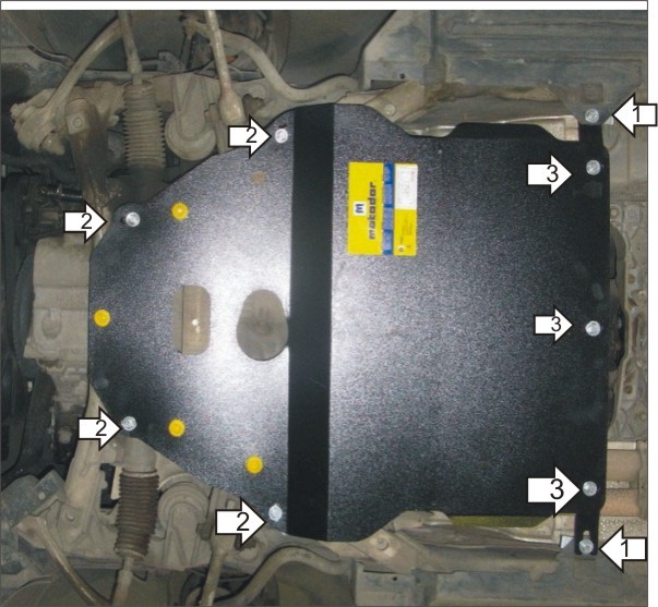 Защита картера двигателя Motodor имеет полимерное порошковое покрытие, позволяющее в огромной степени противостоять агрессивной среде. В комплекте находиться оцинкованный крепеж. Покрытие предохраняет резьбовые соединения от ржавчины, что облегчает демонтаж защиты картера двигателя и после длительной эксплуатации. Защита картера двигателя Motodor устанавливается в штатные места без доработки кузова.