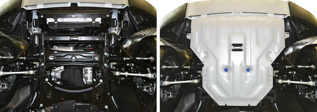 Обращаем ваше внимание, на тот факт, что защита имеет форму, соответствующую модели данного автомобиля. Наличие глубокого штампа и лючков для смены фильтров/масла предусмотрено не на всех защитах. Фото служит для визуального восприятия товара.