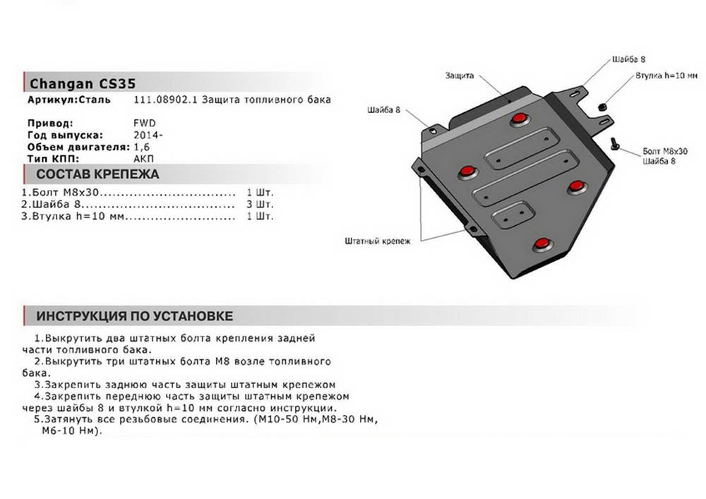 В нашем интернет-магазине можно купить Защиту топливного бака Автоброня для Changan CS35, FWD АКП, V - 1,6 2011-
