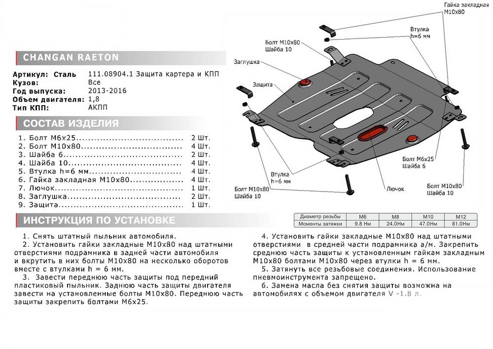 В нашем интернет-магазине можно купить Защиту картера и КПП Автоброня для Changan Raeton; V - 1,8; 2013-2016