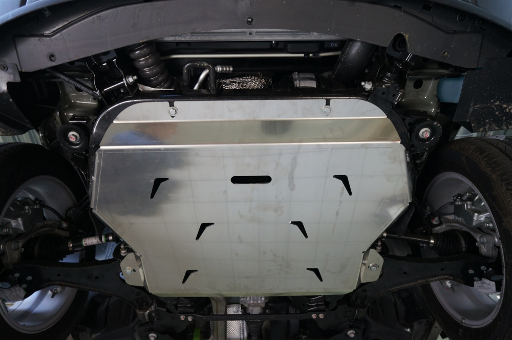 - Минимальная потеря клиренса. Кроме того, не у всех автомобилей подрамник является самой нижней точкой, поэтому на некоторых автомобилях защита не влияет на клиренс.