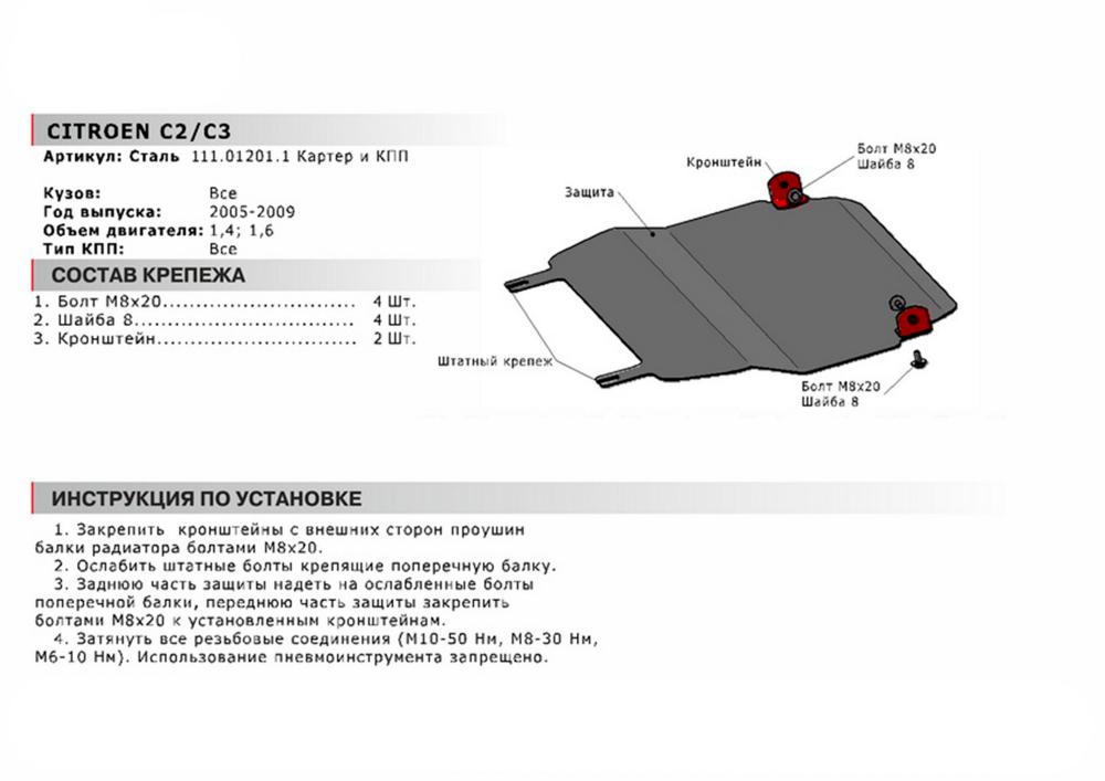В нашем интернет-магазине можно купить Защиту картера и КПП Автоброня для Citroёn C3, V - 1,4; 1,6 2005-2009