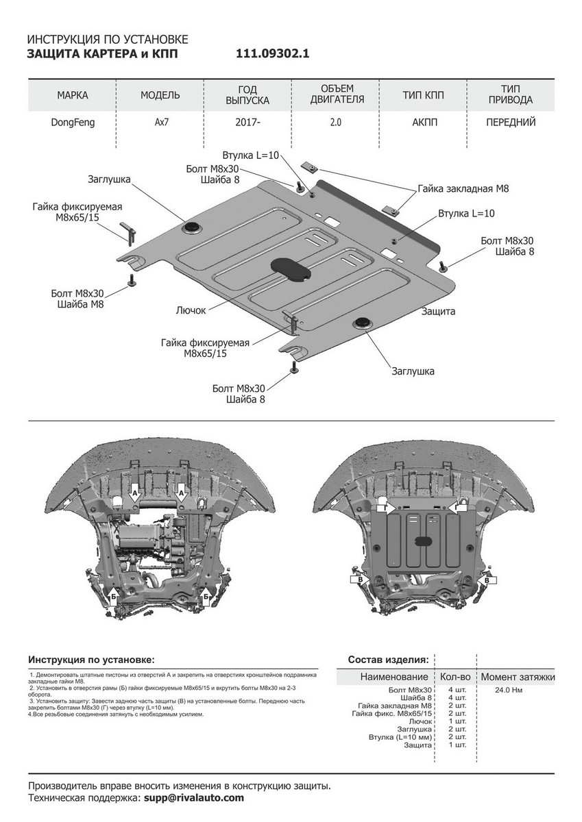 В нашем интернет-магазине можно купить Защиту картера и КПП АвтоБроня для Dongfeng AX7 АКПП FWD 2017-н.в.