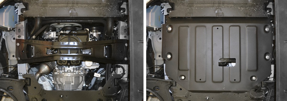 Обращаем ваше внимание, на тот факт, что защита имеет форму, соответствующую модели данного автомобиля. Наличие глубокого штампа и лючков для смены фильтров/масла предусмотрено не на всех защитах. Фото служит для визуального восприятия товара.