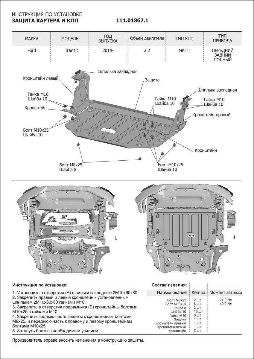 В нашем интернет-магазине можно купить Защиту картера и КПП АвтоБроня для Ford Transit 2014-н.в.