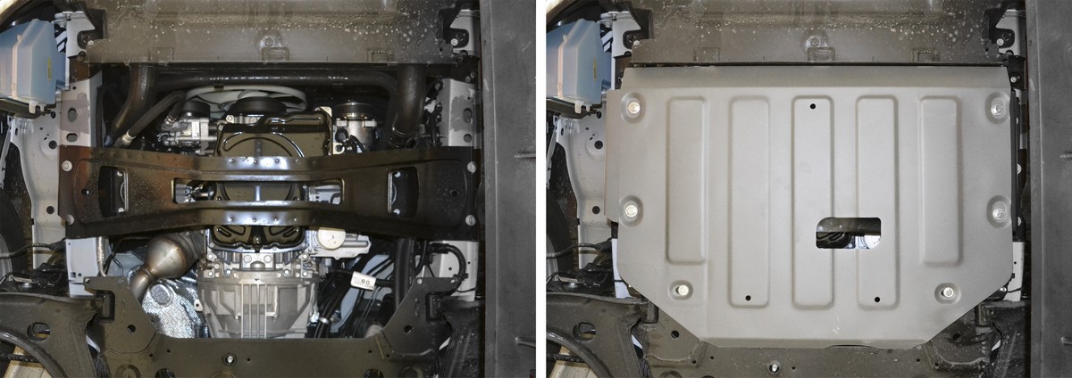Обращаем ваше внимание, на тот факт, что защита имеет форму, соответствующую модели данного автомобиля. Наличие глубокого штампа и лючков для смены фильтров/масла предусмотрено не на всех защитах. Фото служит для визуального восприятия товара.