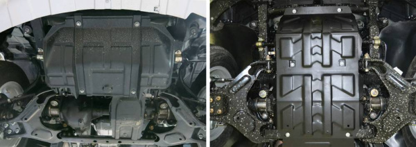 Металлическая защита картера для автомобиля Great Wall изготавливается способом штамповки или проката из горяче/холоднокатаной стали конкретных марок. Кроме металлической, существует и композитная. Защита двигателя применяется как дополнительное оборудование для автомобиля Great Wall и предохраняет поддон картера от вмятин и повреждений при передвижении по проселочным и прочим дорогам низкого качества, наездах на бордюры и выступы, попадании булыжников и других посторонних предметов под днище машины.