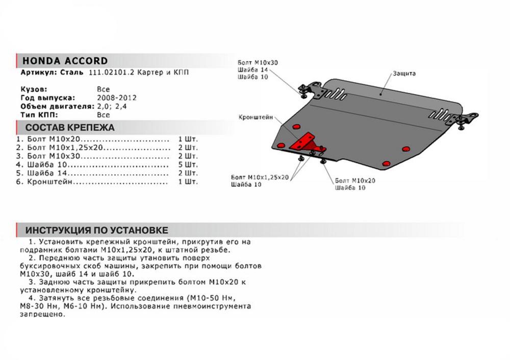 В нашем интернет-магазине можно купить Защиту картера и КПП Автоброня для Honda Accord, V - 2,0; 2,4 2008-2012