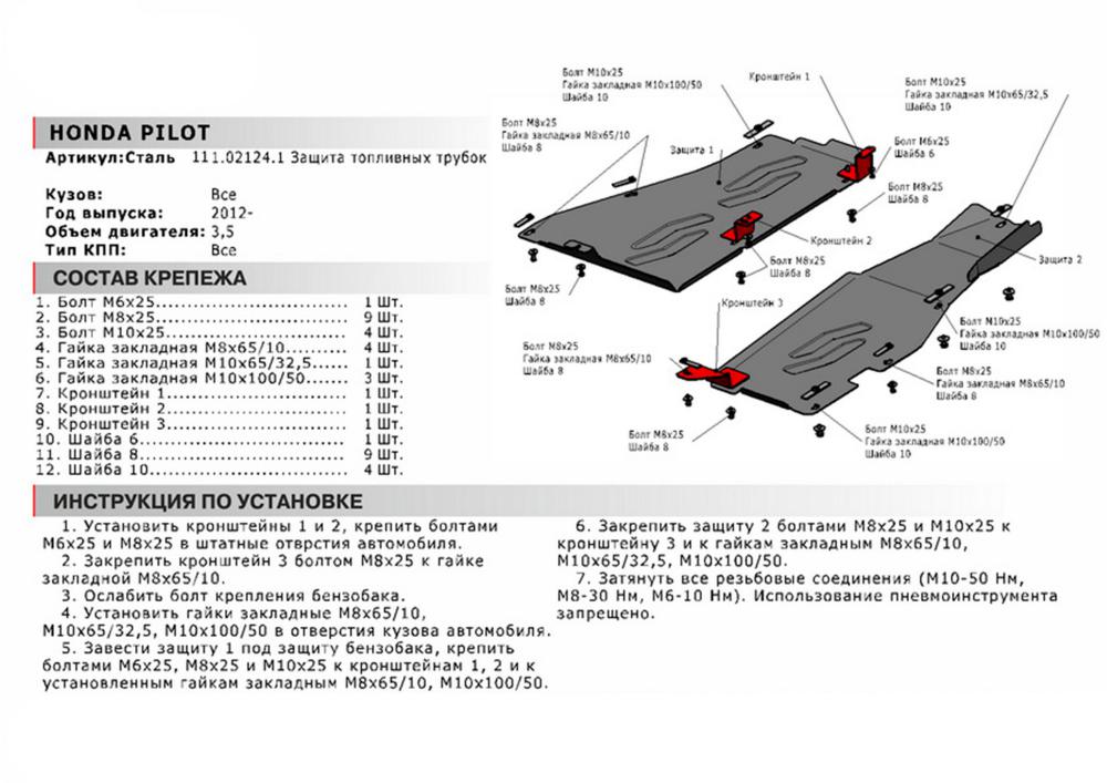 В нашем интернет-магазине можно купить Защиту топливных трубок Автоброня для Honda Pilot, V - 3,5 2012-