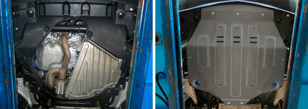Обращаем ваше внимание, на тот факт, что защита имеет форму, соответствующую модели данного автомобиля. Наличие глубокого штампа и лючков для смены фильтров/масла предусмотрено не на всех защитах. Фото служит для визуального восприятия товара.